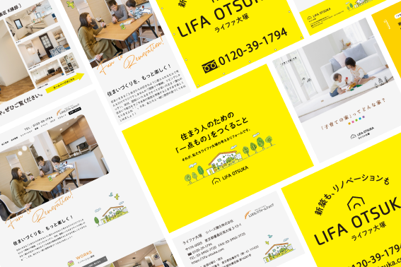 チラシ、ホームページ、SNS、現場看板、紹介など、お客様と会社とのあいだには、さまざまな接点があります。重要なのは、どの接点においても「同じ世界観・同じ印象・同じメッセージ」であることです。